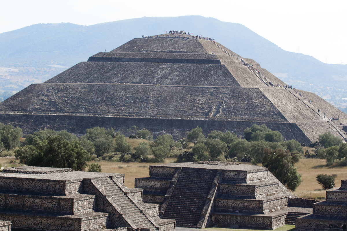 “Teotihuacán” es un amplio complejo arqueológico al noreste del Estado de México, en el medio del parque se transita por “La calzada de los muertos” desembocando el la “pirámide del la Luna” en donde encontramos una increíble vista de “La pirámide del Sol” una de las más grandes de Mesoamérica.