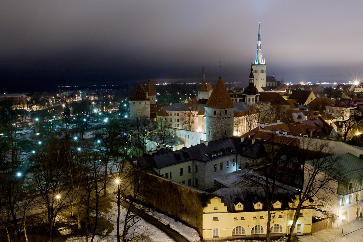 Vista desde el punto más alto de la mística ciudadela antigua de Tallin en el distrito Linnaosa en la capital de Estonia, una de las ciudades medievales europeas mejor conservadas. El casco histórico está protegido desde el 3 de marzo de 1,993 y esta compuesto por Vanalinn y la colina de Toompea.