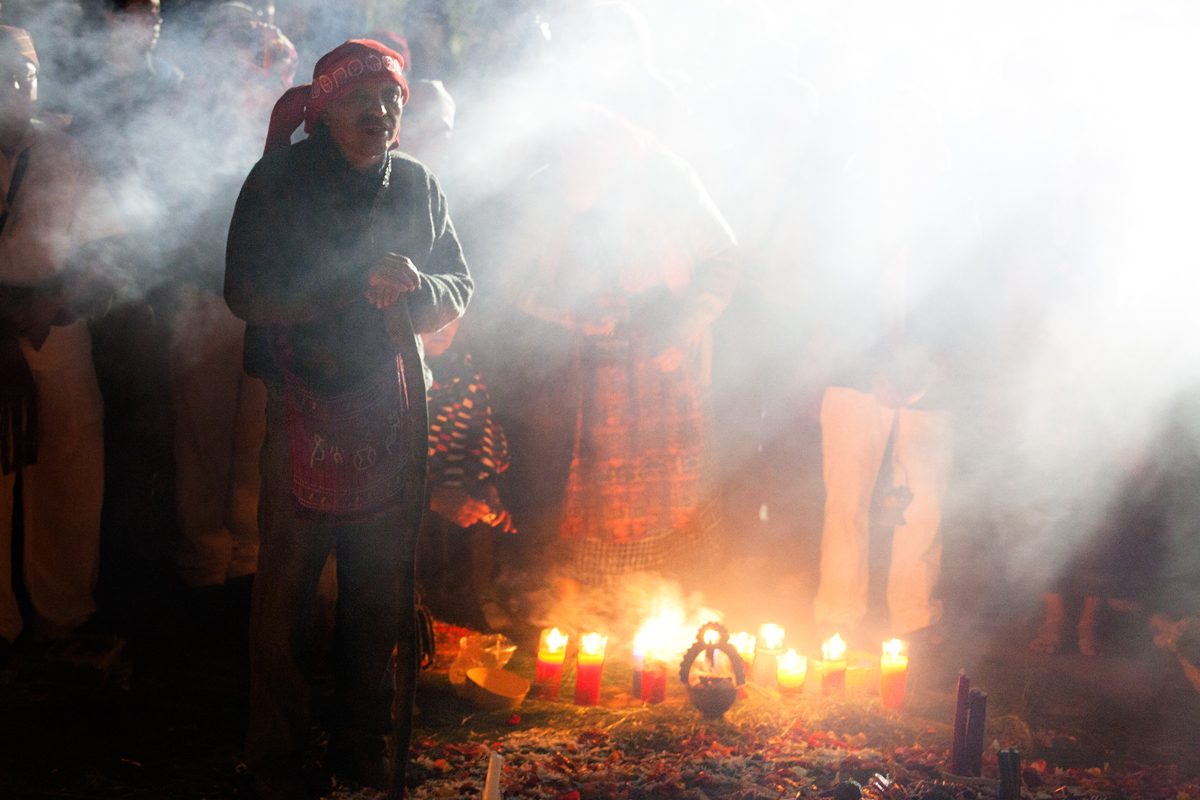 “Iximché” en un sitio sagrado maya ubicado en Chimaltenango, esta pareja inmersa en su ceremonia busca crear un vínculo con el ser supremo para saturarse de energías positivas o transformar las energías negativas, entre sus peticiones generalmente están la salud, el bienestar, la iluminación y la sabiduría.